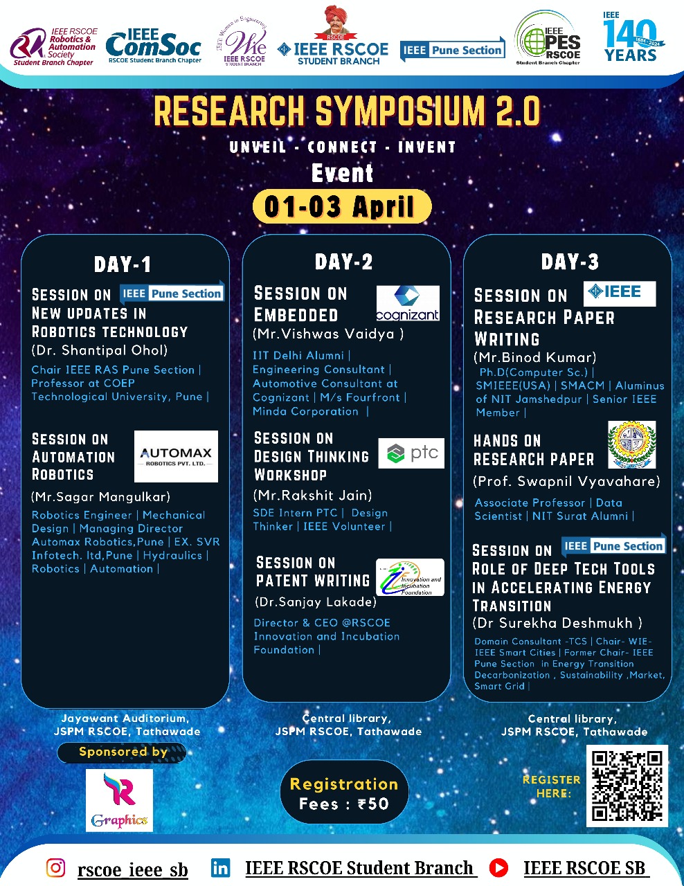 Join us at JSPM RSCOE Tathawade campus for three days of innovation and research